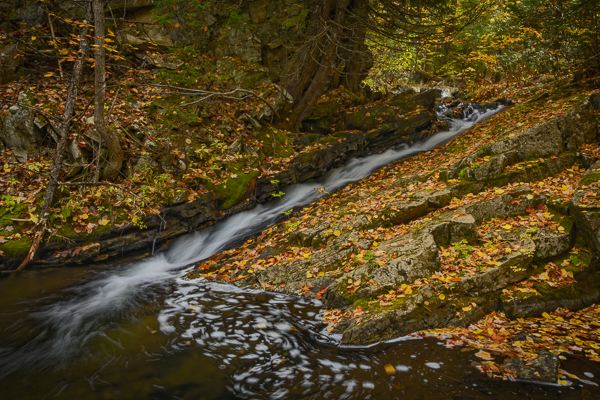 Fall color comes to Baxter State Park. This view of Roaring Brook is from the footbridge on the Sandy Stream Pond/Russel Pond trail.