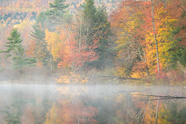 Fog on the shoreline of Round Pond in Central Maine’s Kennebec Highlands Public Reserved Land.